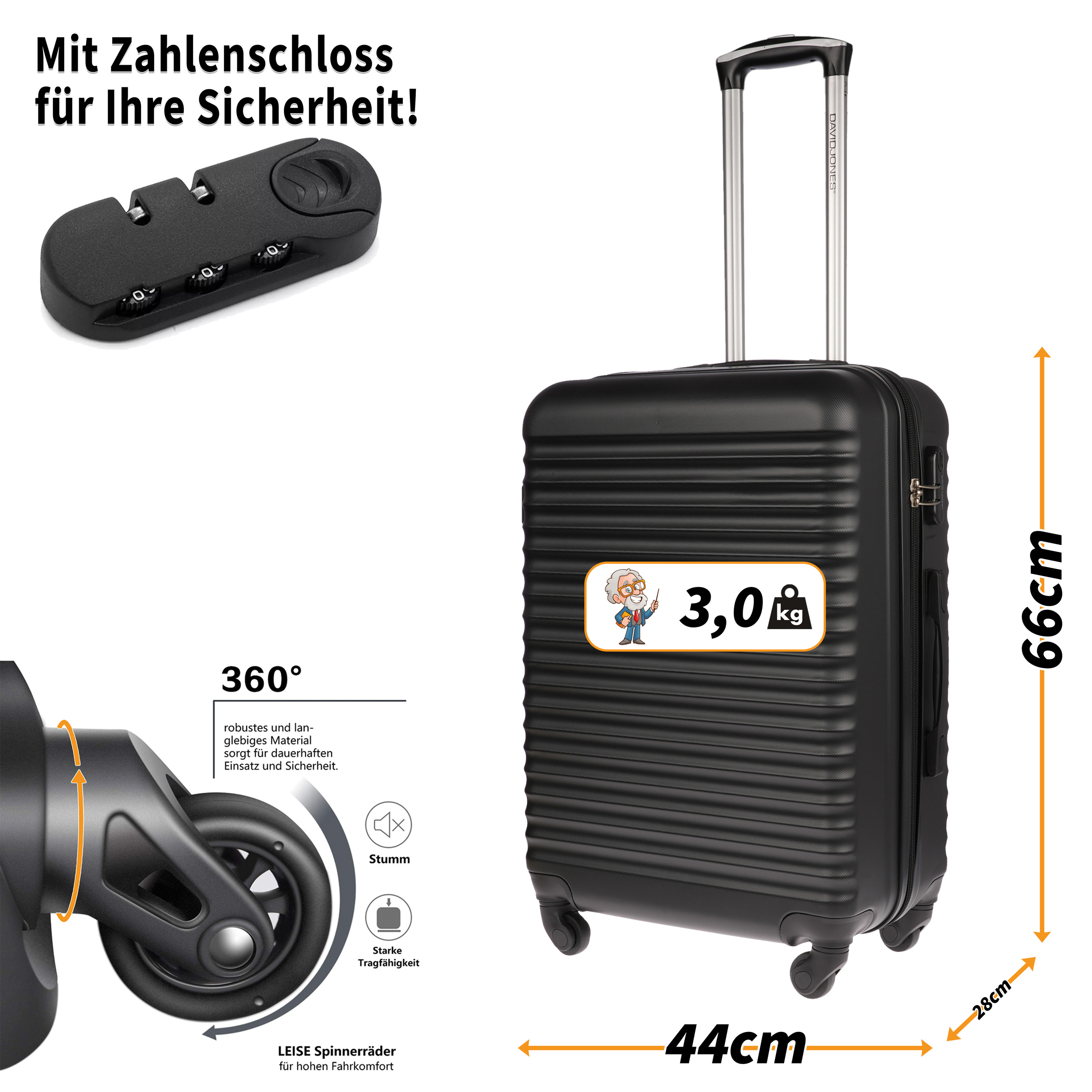 Ausgestattet mit vier 360 Grad Rollen für angenehmes reisen und Sicherheitsschloss